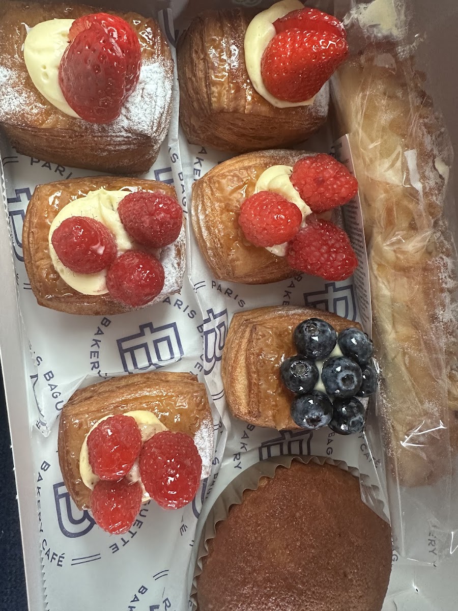 Absolutely delicious! The pastries from Paris Baguette are beautifully made and taste just as good as they look. The croissant pastries are perfectly flaky and buttery, with a light crisp exterior and soft layers inside. The cream filling is smooth and not overly sweet, pairing wonderfully with the fresh fruit toppings. The strawberries, raspberries, and blueberries are fresh, juicy, and add the perfect balance of sweetness and tartness. Everything feels high-quality and thoughtfully prepared. Even the presentation is elegant and inviting. Paris Baguette never disappoints—these pastries are perfect for breakfast, dessert, or a special treat. Highly recommended for anyone who loves fresh, bakery-style pastries with great flavor and texture.